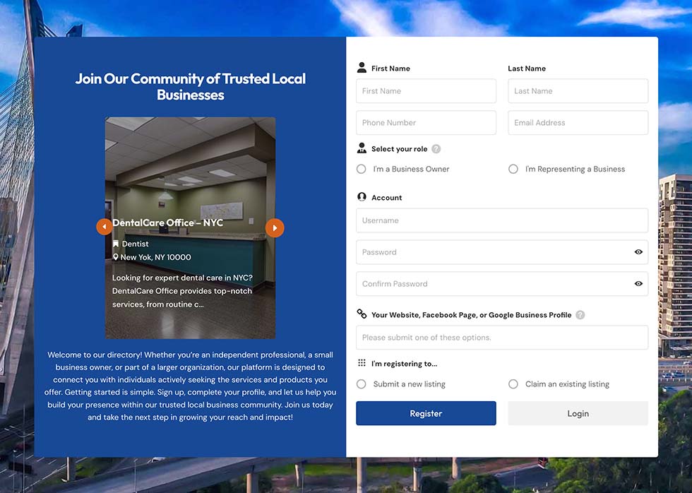 Welcome! As a business owner, our directory offers you the opportunity to submit a new listing, claim an existing one, and manage your business presence through an account on our site. Here’s how you can make the most of your account: